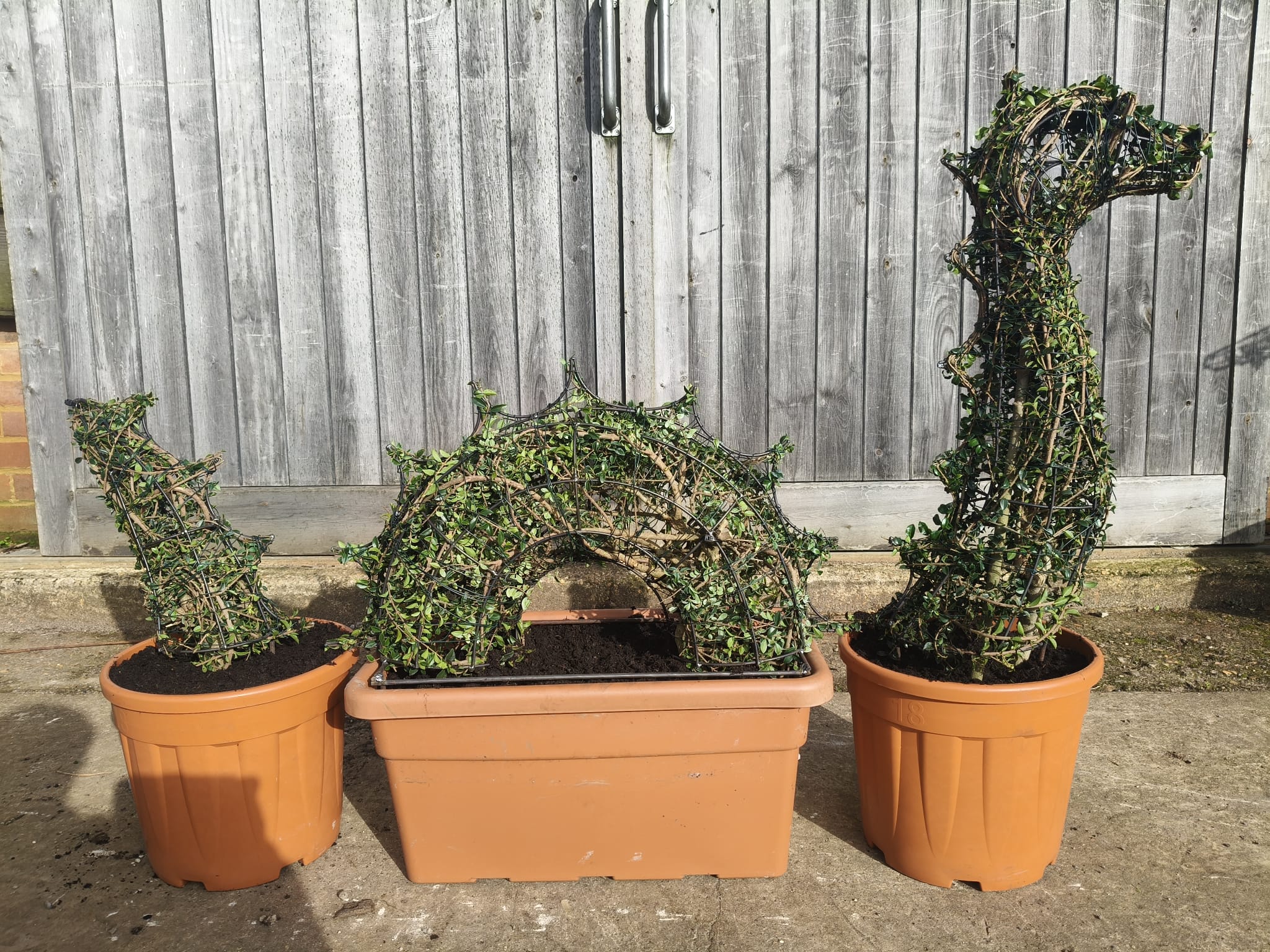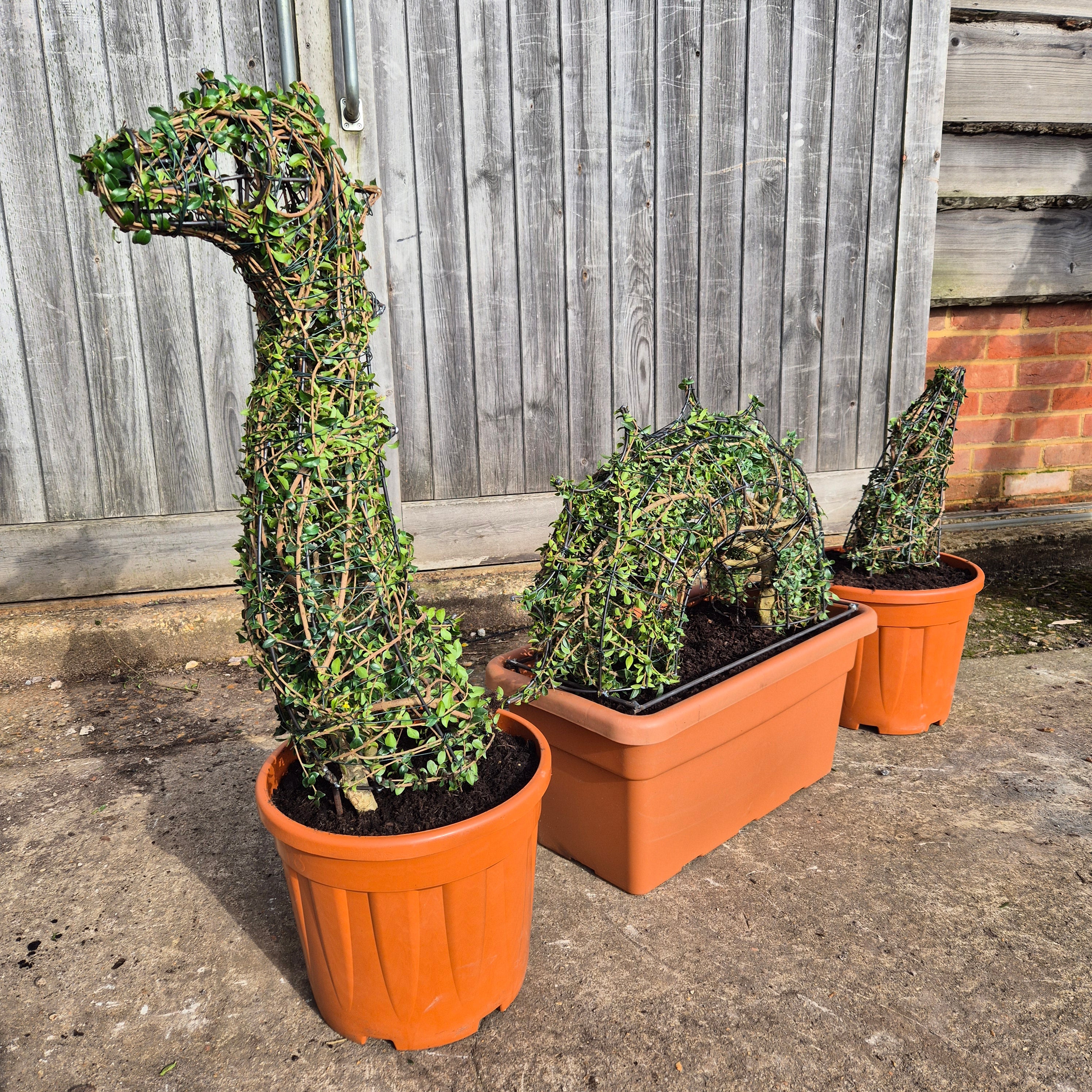 Choose this and you get a real living plant sculpture, made with specially grown Box-leaved privet (Ligustrum delavayanum) or Japanese Holly (Ilex crenata), growing around a strong custom made steel frame.